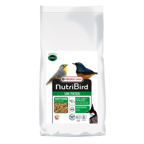 Nutribird Uni patee è un alimento completo per gli uccelli frugivori e insettivori di piccole dimensioni. È anche un alimento supplementare per gli uccelli indigeni ed esotici. Il pastoncino è inumidito con miele puro e naturale al 100 % per una migliore assimilazione e un alto valore nutritivo. Nutribird Uni patee ha un basso tenore di ferro: < 70 ppm.