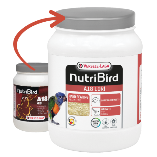 Pappa da imbecco a basso tenore proteico e con elevato contenuto di fruttosio, NutriBird A18 è studiato specificatamente per l'allevamento a mano di tutte le specie di Lori e Lorichetti.