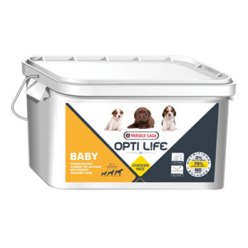 Dalla dodicesima settimana i cuccioli necessitano di un alimento complementare, che rende il momento dell’allattamento meno impegnativo per la madre. Opti Life Baby è stato appositamente studiato affinchè i cuccioli si abituino ad una alimentazione solida. Opti Life Baby è a base di pollo e riso, è molto energetico e facile da digerire, contiene krill come fonte naturale di acidi grassi omega-3 che sono importanti per una crescita ottimale del cervello e della vista. Opti Life Baby contiene inoltre prebiotici (FOS & MOS) e probiotici per una sana flora batterica intestinale.